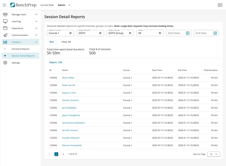 We’ve added a new Session Detail Report under Analytics to help admins track learner activity at the session level.